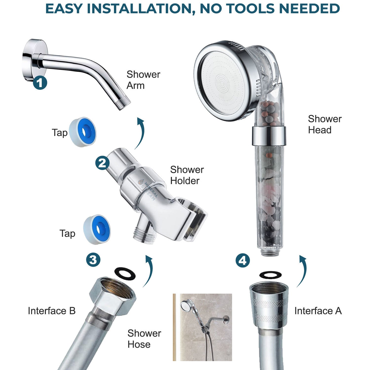 2. Attach the accessory to your existing MineralStream shower head or fixture (depending on the accessory)