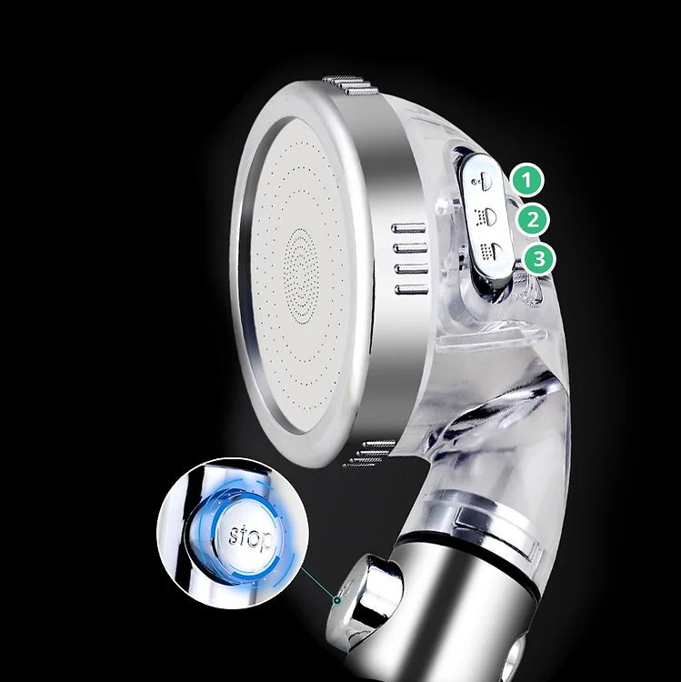 Con il MineralStream BLACK - Filtrazione della vitamina C Goditi docce ad alta pressione, simili a massaggi, mantenendo al contempo la salute di pelle e capelli. Niente acqua dura, niente cloro, niente contaminanti! Inoltre, il pulsante STOP interrompe il flusso d'acqua e ne mantiene la temperatura costante durante lo shampoo o la schiuma.